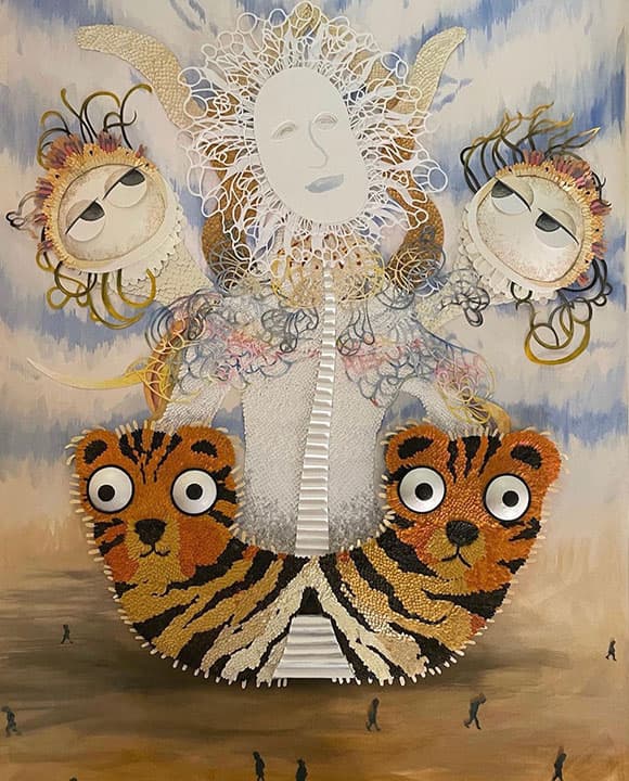 Cut paper, papier mache, Gouache on paper, 27 x 19″